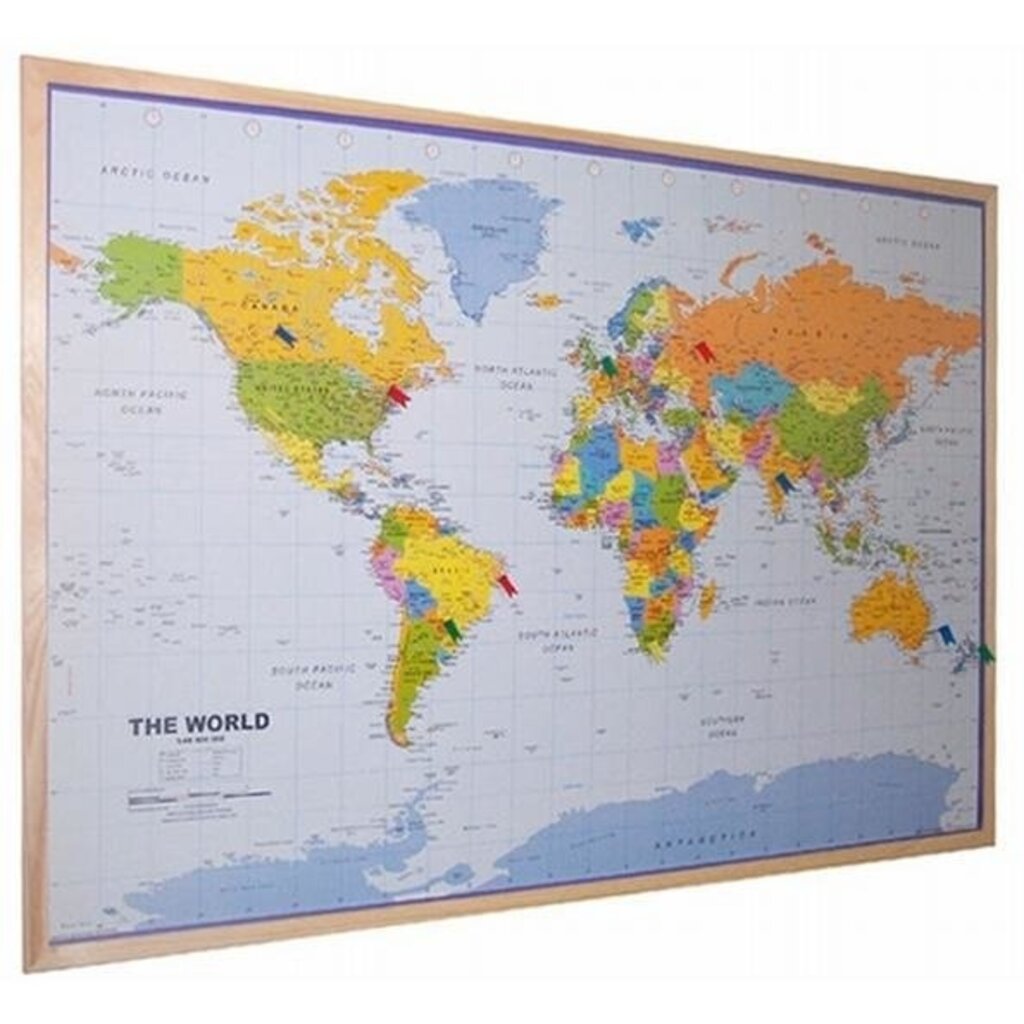 Korkpinnwand Weltkarte - Holzrahmen - 60 x 90 cm