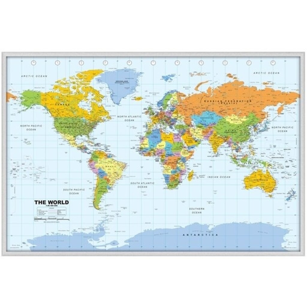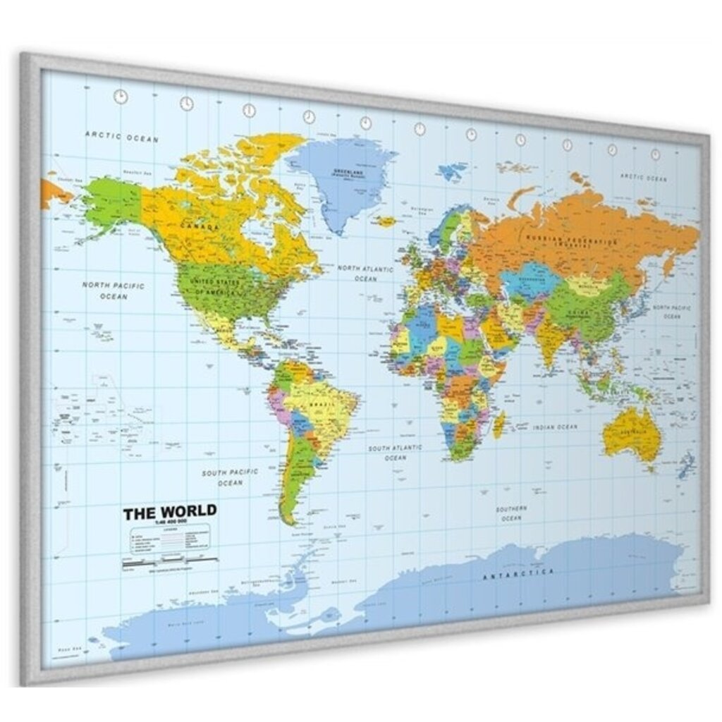 Korkpinnwand Weltkarte, Silberrahmen, 60 x 90 cm